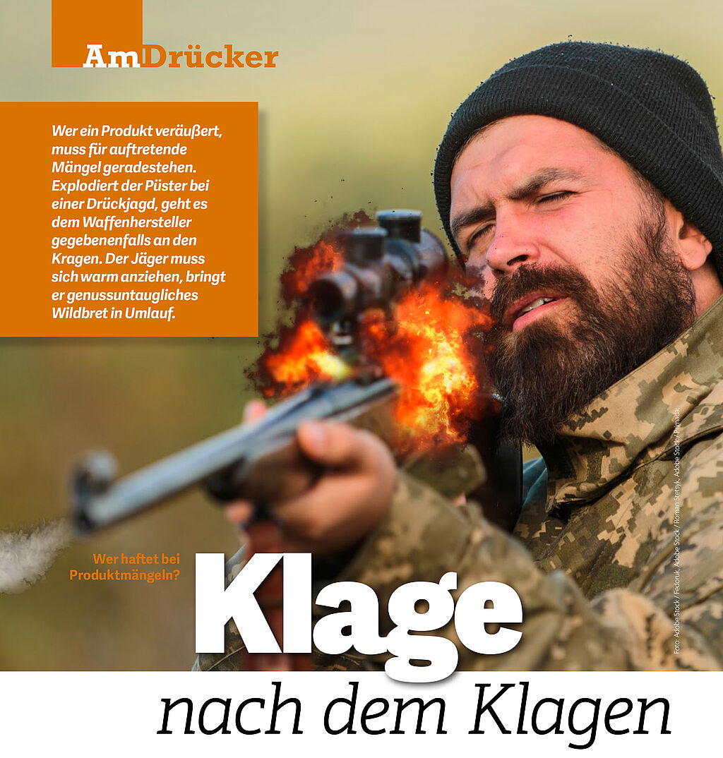 Seine geringste Sorge wird wohl der Ersatz des explodierten Schießprügels sein. Wer eine Sache erwirbt, kann erwarten, dass diese ordnungsgemäß funktioniert. Wenn die in der Patrone gebundene Energie das Projektil nicht Richtung Wildsau, sondern stattdessen den Verschluss gegen das Jochbein schleudert, kann davon kaum die Rede sein.